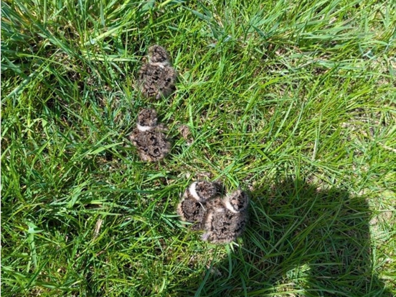 Alle 4 uit het ei 29 april achter de molen (schaduw is van Erik).