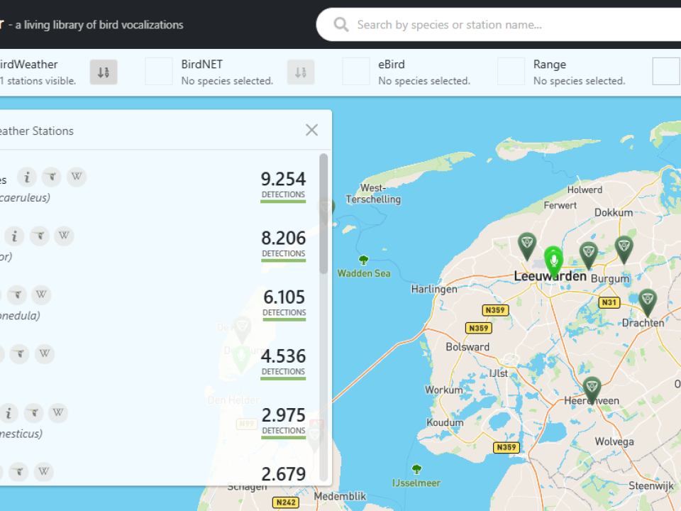 Op de website birdweather.com is wereldwijd live te zien welke vogels er geregistreerd worden. Via een netwerk van geluidsrecorders die aangesloten zijn op het internet wordt bijgehouden welke vogels voorbijkomen. De vogelgeluiden worden met AI (Arificiele Intelligentie) herkend